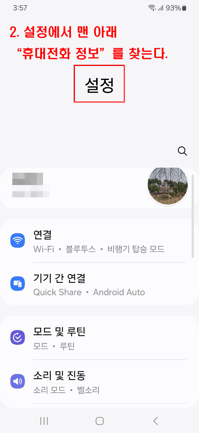 휴대전화 정보' 또는 '장치 정보' 찾기: 설정 메뉴에서 '휴대전화 정보', '장치 정보', 또는 비슷한 이름의 섹션을 찾습니다.